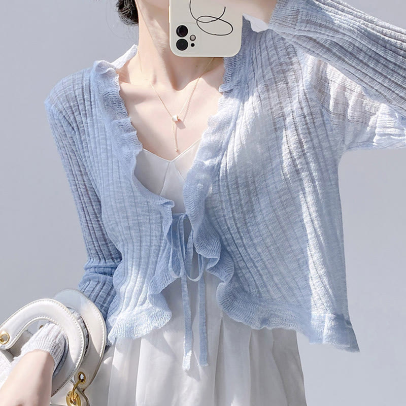 ラッフルリブ編みレースアップトップス
