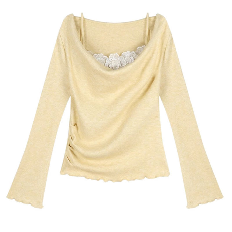 オフショルダーフェイクツーピースレーストップス