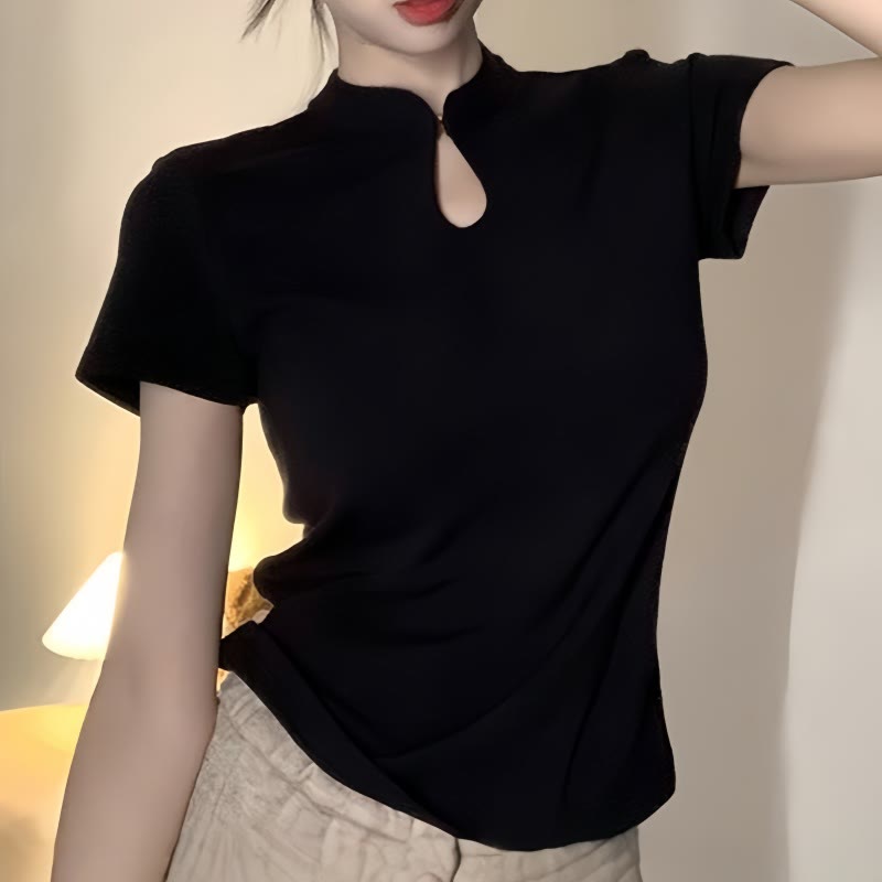 イレギュラーツイストノットネックラインTシャツ