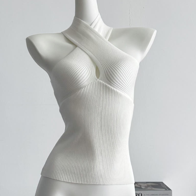 クロスホルターニットトップ