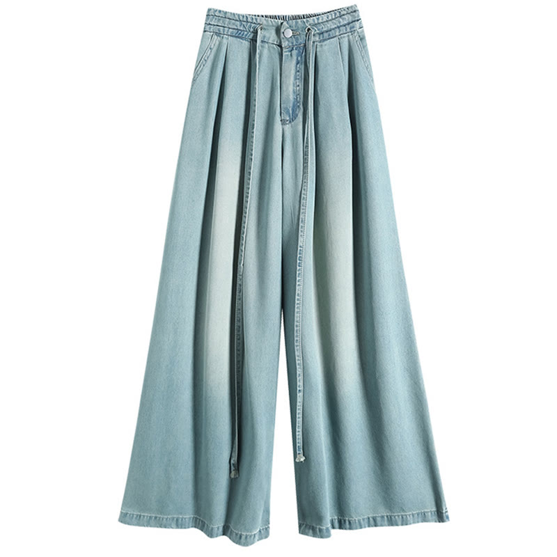 ドローストリングワイドレッグデニムパンツ