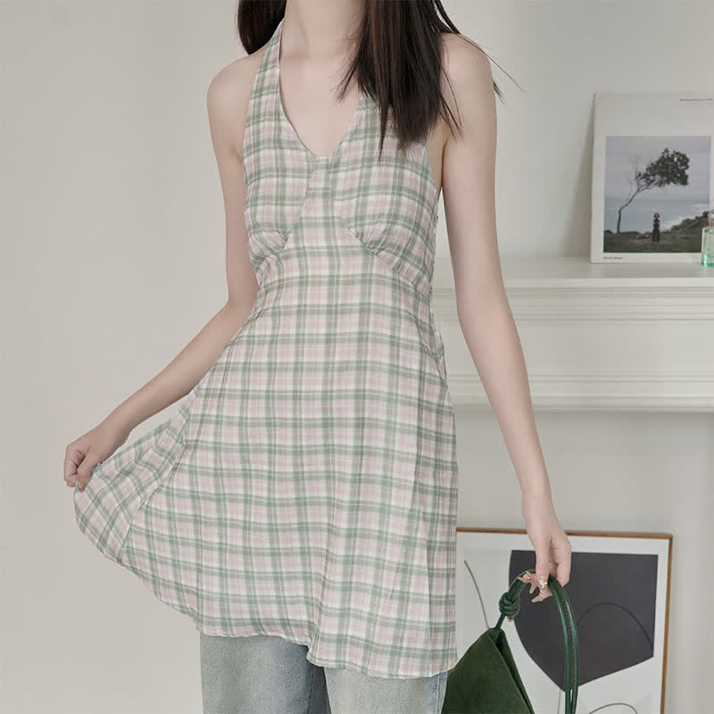 チェック柄ホルターネックトップス