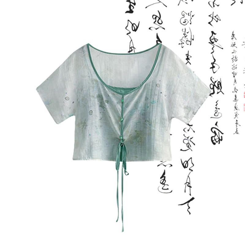 ボウノットバタフライチュールクロップトップTシャツフィッシュテールデニムスカート2ピースセット