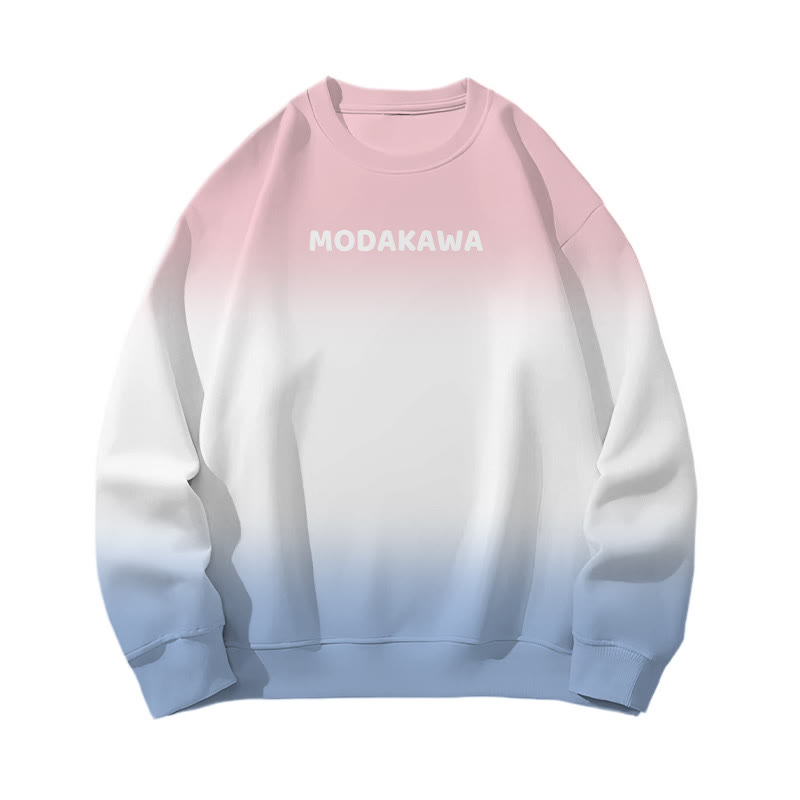 Modakawaグラデーションレタープリントラウンドカラースウェットシャツ
