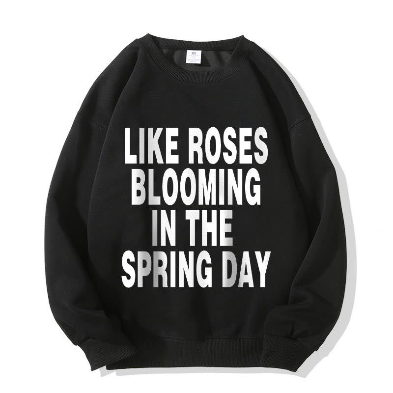 春の日に咲くバラのように レタープリント ラウンドカラー スウェットシャツ