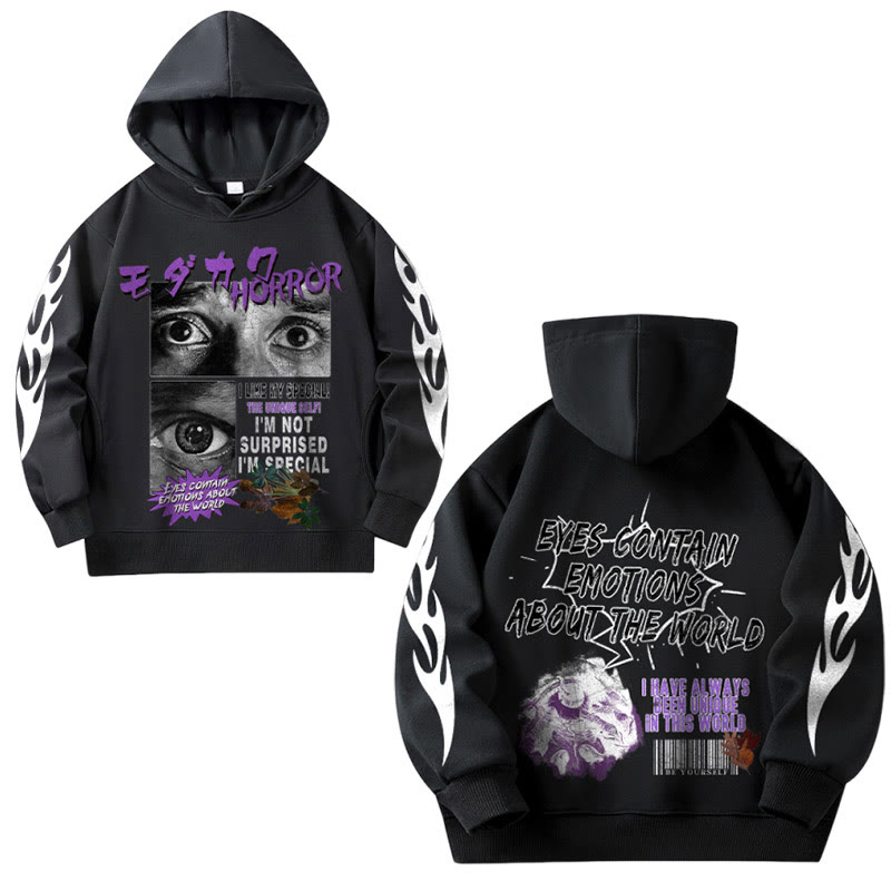 目には世界に対する感情が宿る アイプリント ルーズパーカー