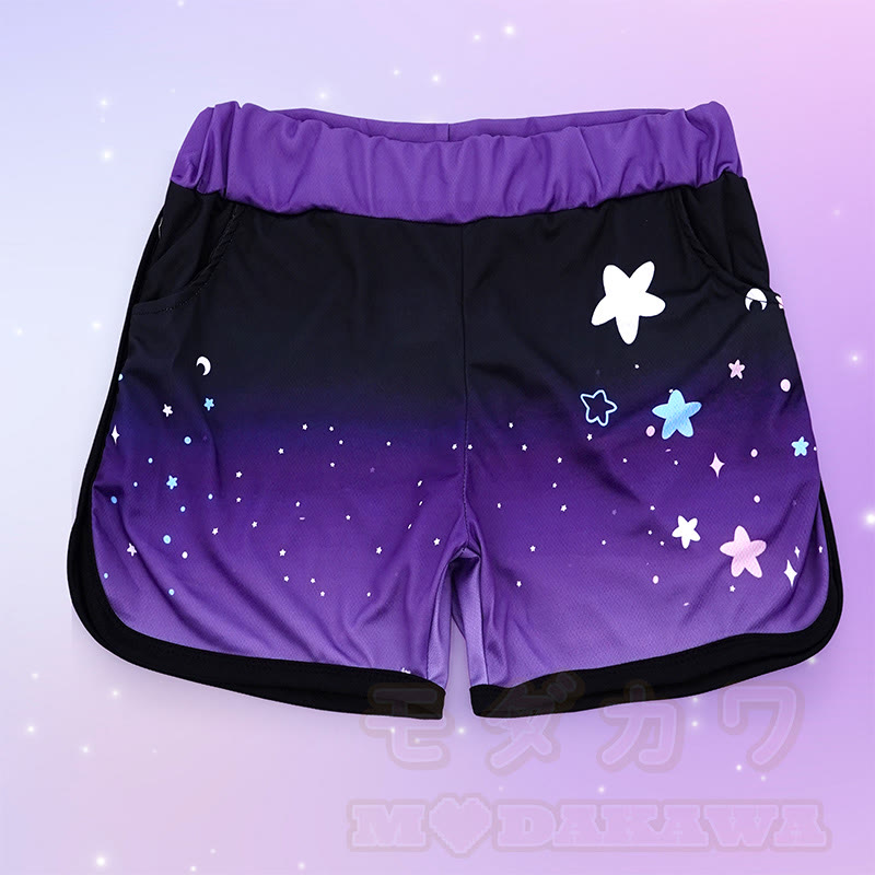 Modakawaグラデーションスタームーンプリントカジュアルショートパンツ