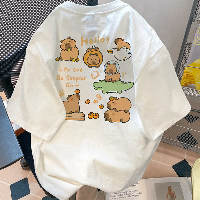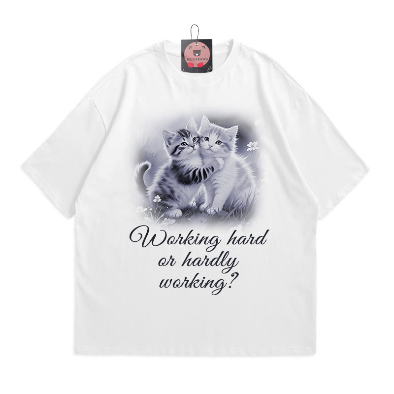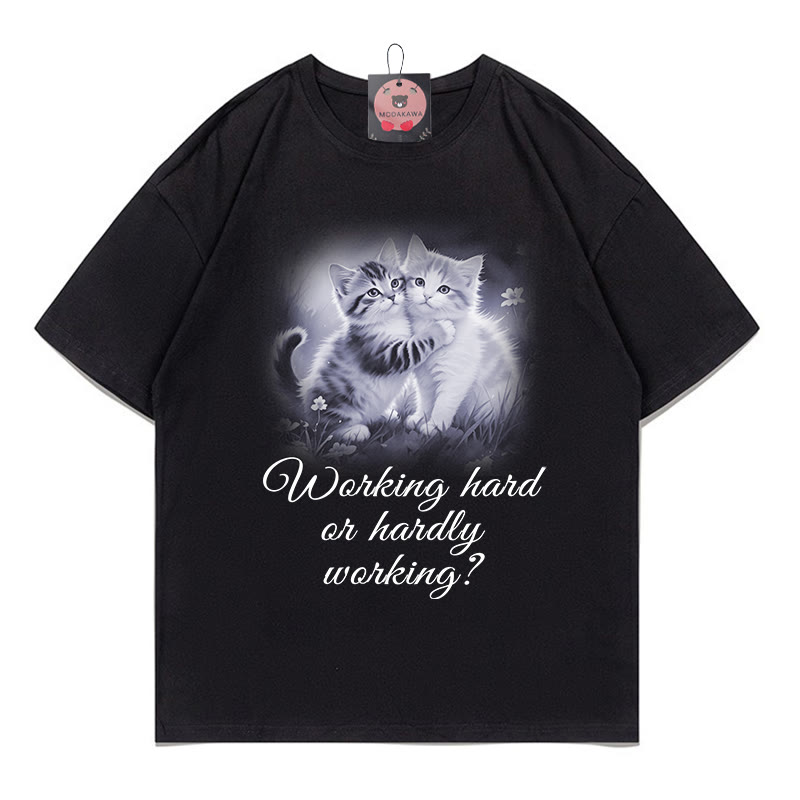 WORKING HARD OR HARDLY WORKINGキティプリント100%綿ModakawaTシャツ