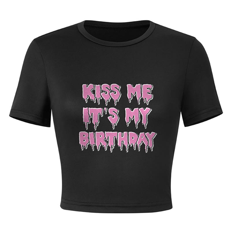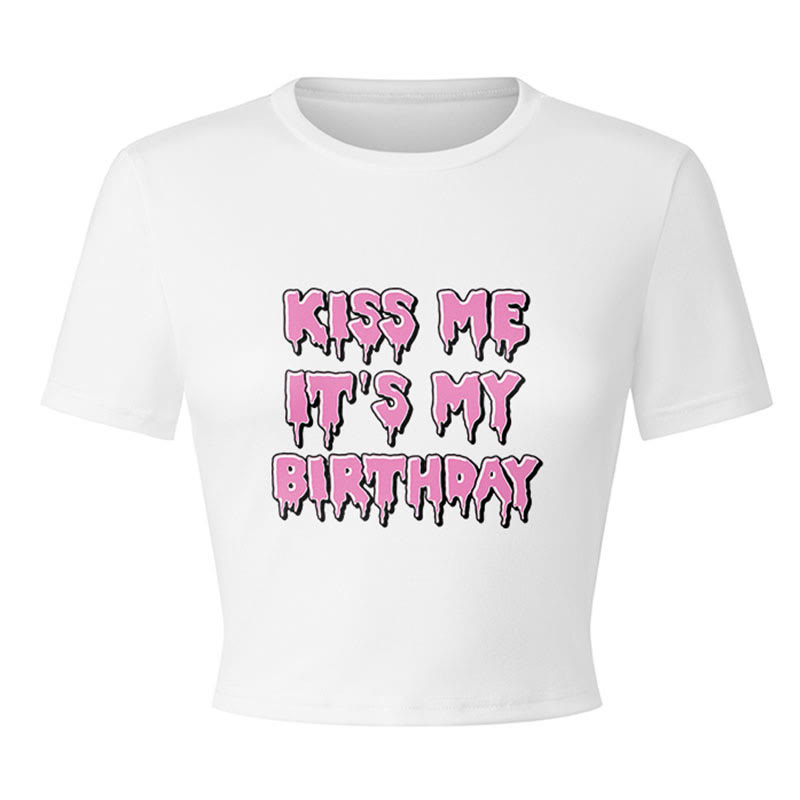 「KISS ME IT'S MY BIRTHDAY」プリントModakawaクロップトップ
