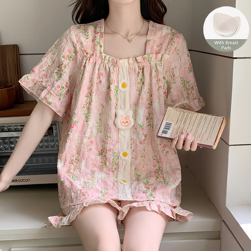 Modakawa九尾狐 フラワープリント ヴィンテージ フード付き スウェットシャツ ドレス