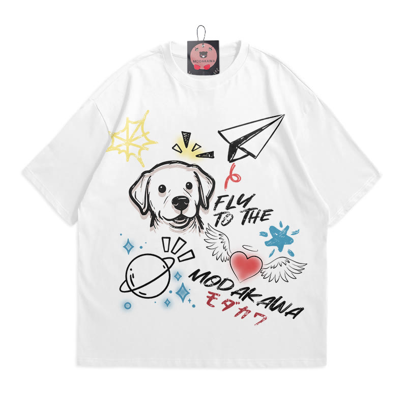 JUST HERE FOR THE PAYCHECKベアドルプリントの100%綿ModakawaTシャツ