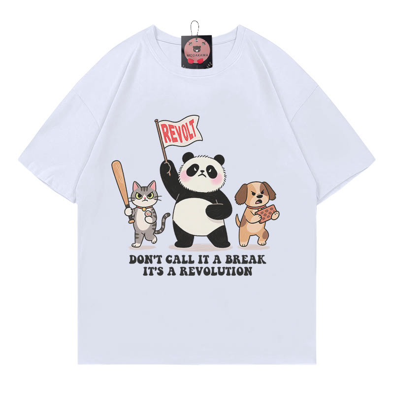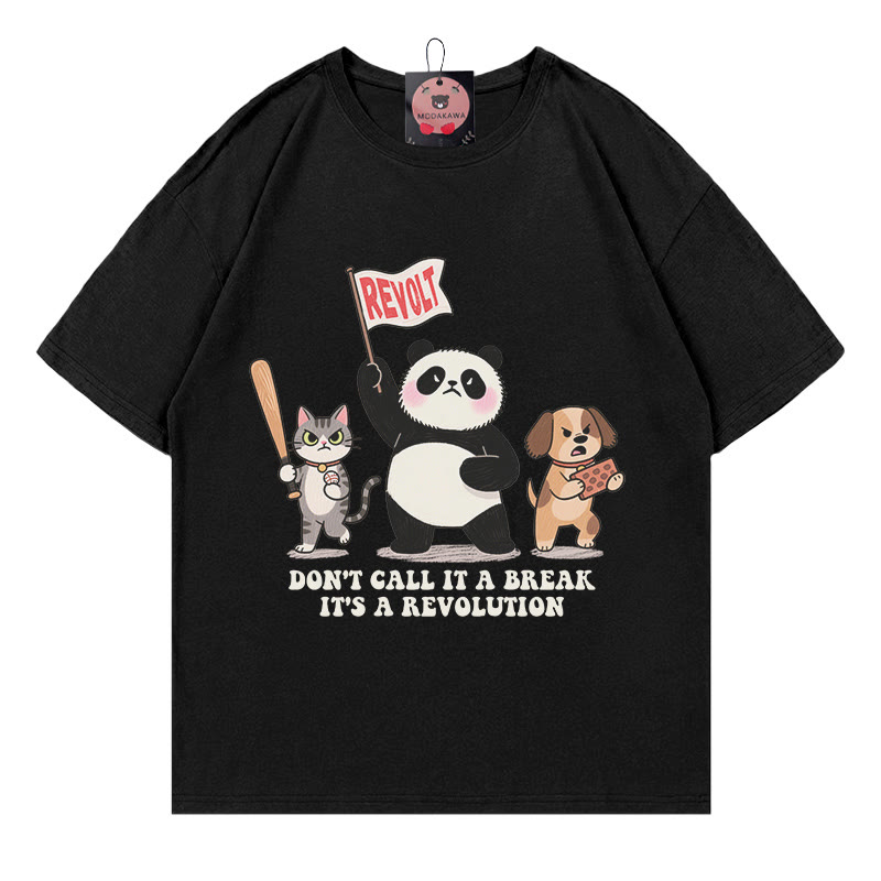 ブレイクなんて言わないで、革命だ!パンダ、キティ、パピープリントの100%綿ModakawaTシャツ