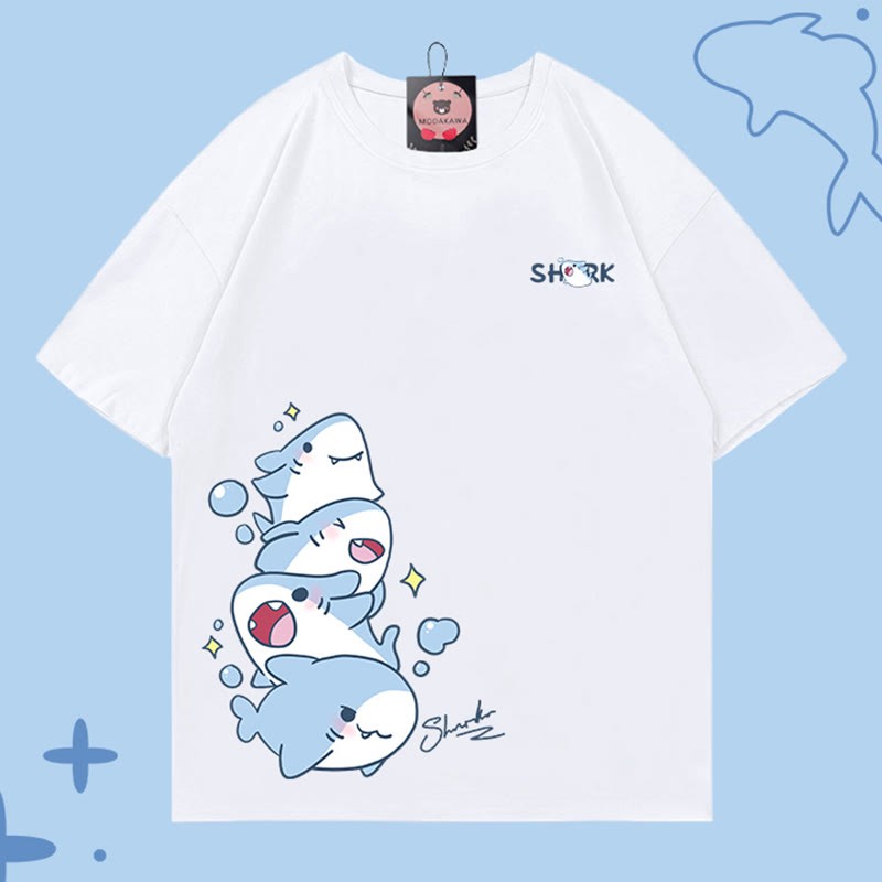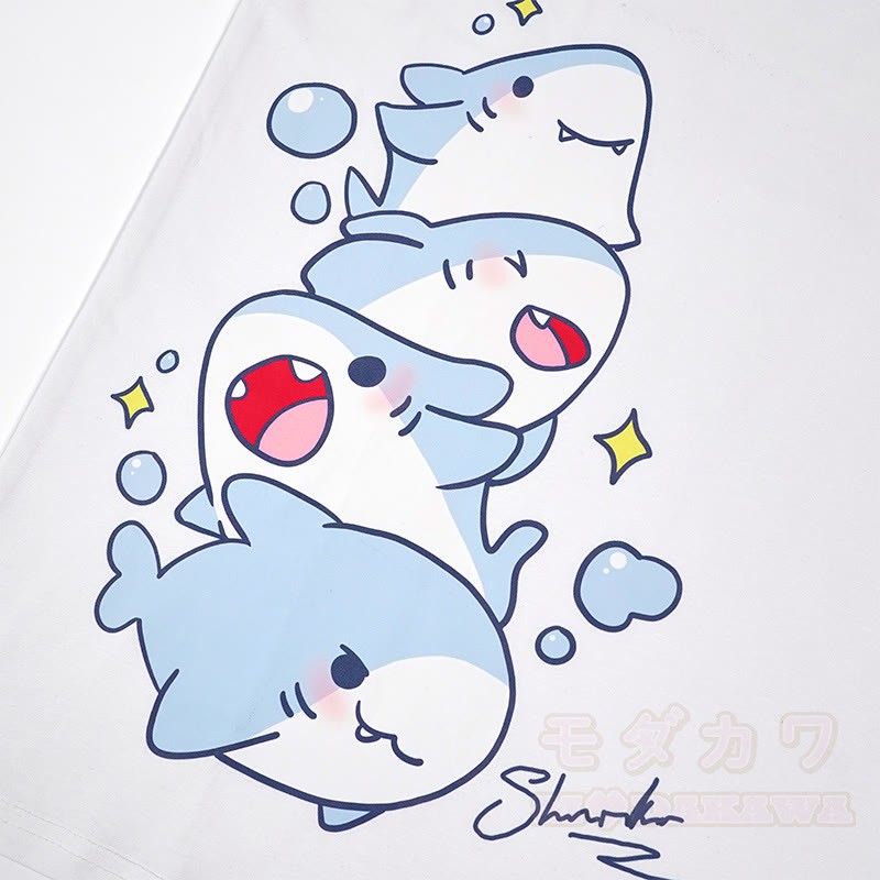 サメプリント100%綿ModakawaTシャツ