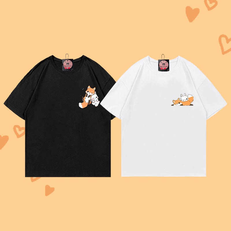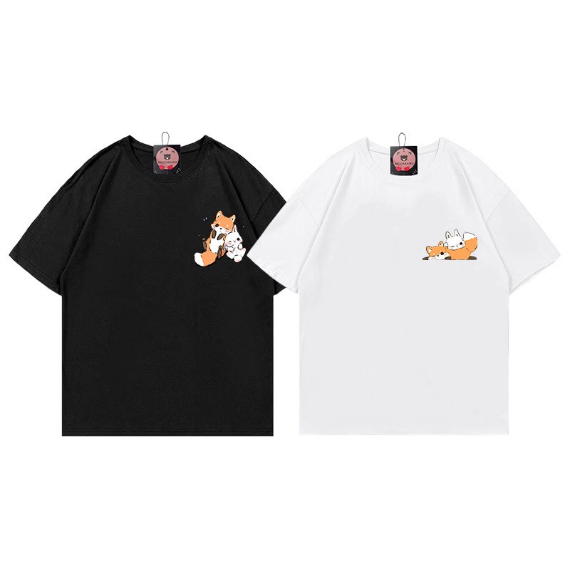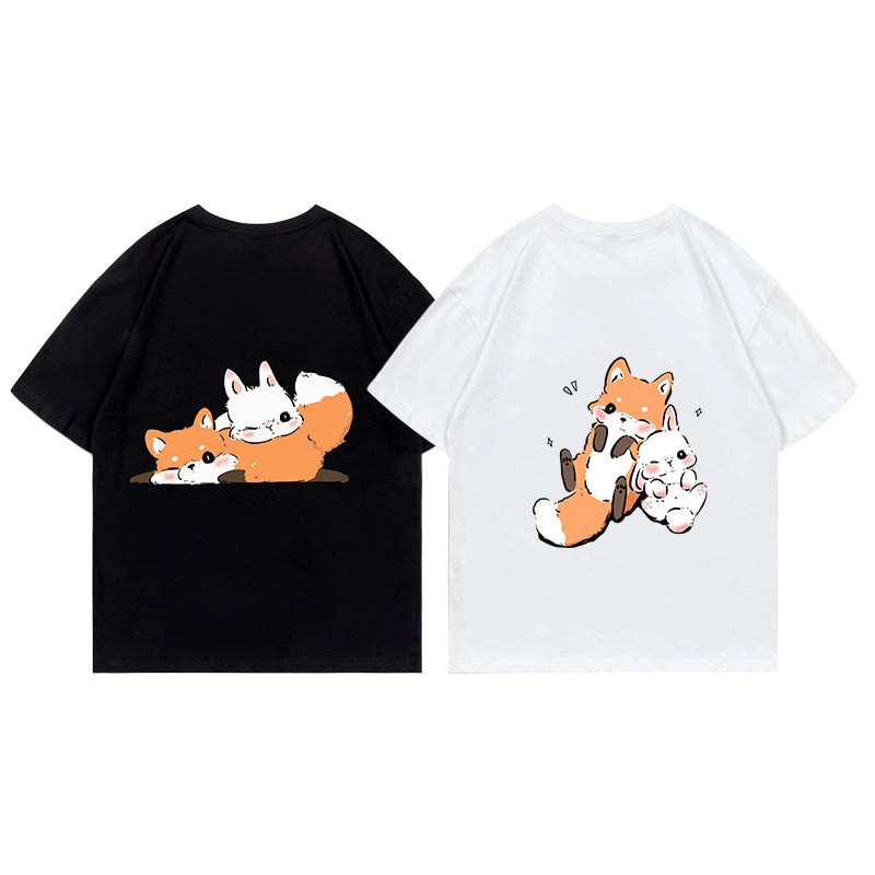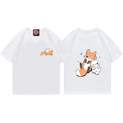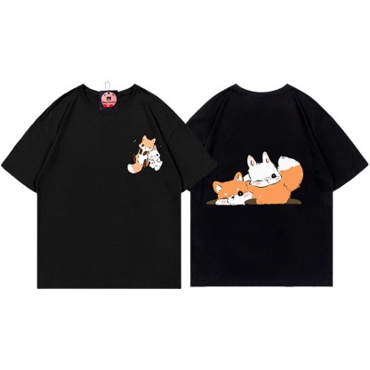 ガールフレンド ボーイフレンド フォックスプリント100%綿ModakawaTシャツ