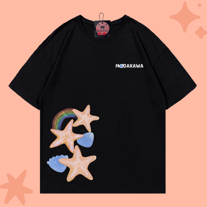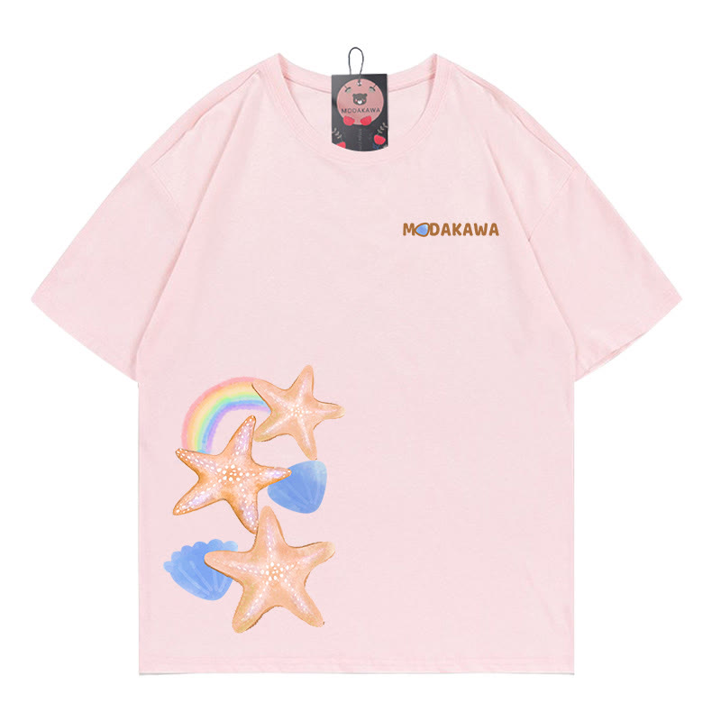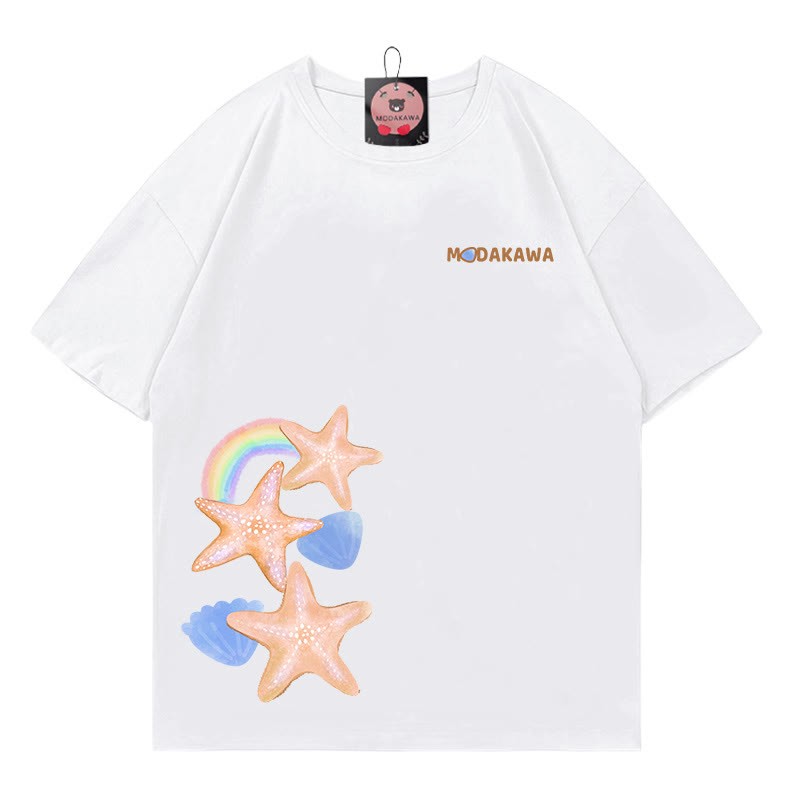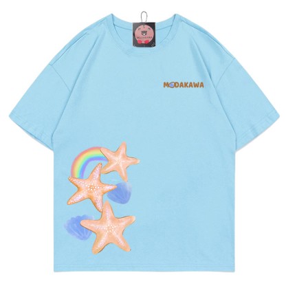 ヒトデ文字プリント100%綿ModakawaTシャツ