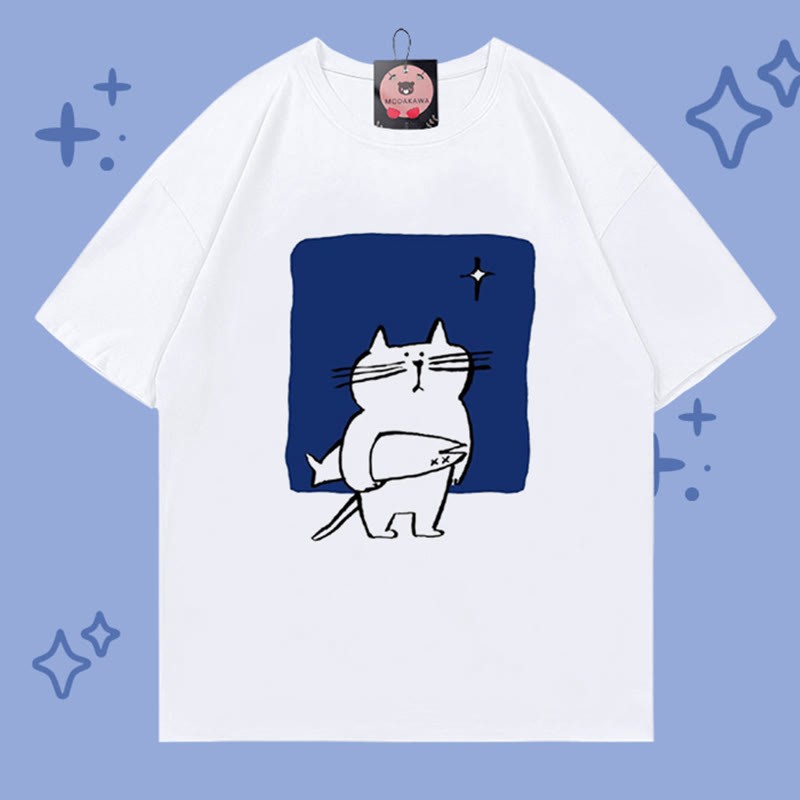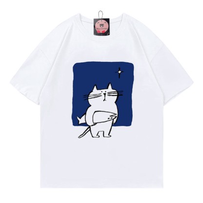 キティフィッシュプリント100%綿ModakawaTシャツ