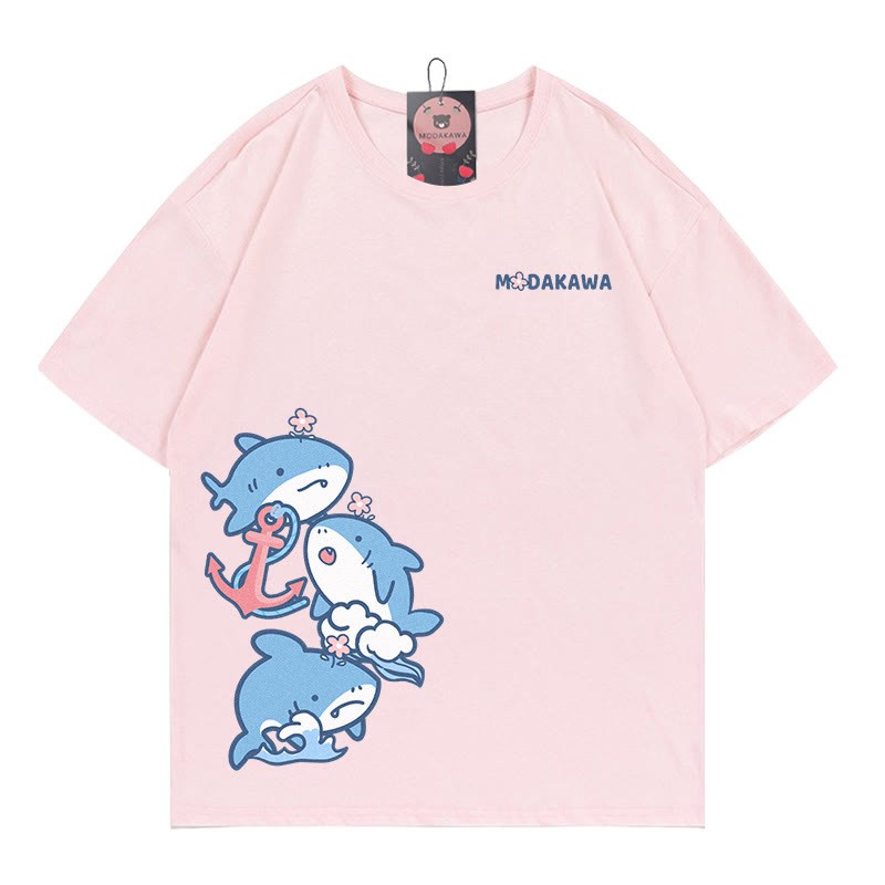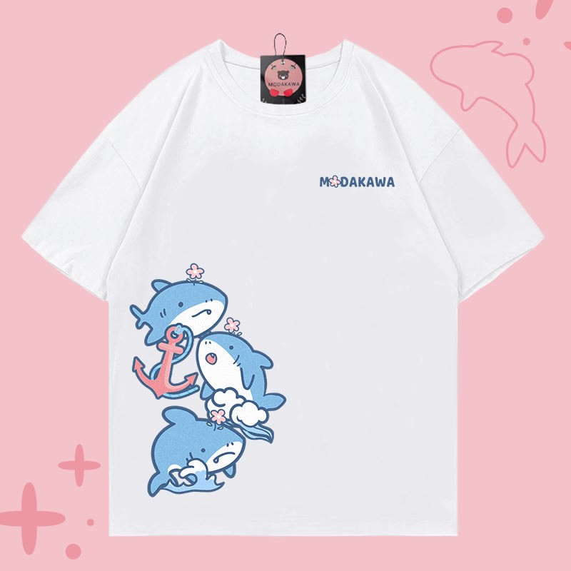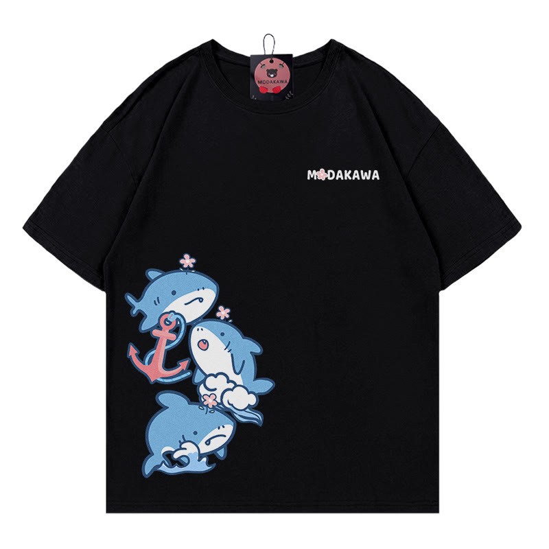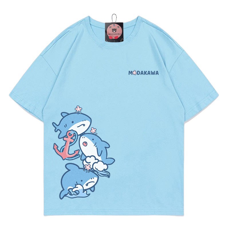 サメの文字プリント100%綿ModakawaTシャツ