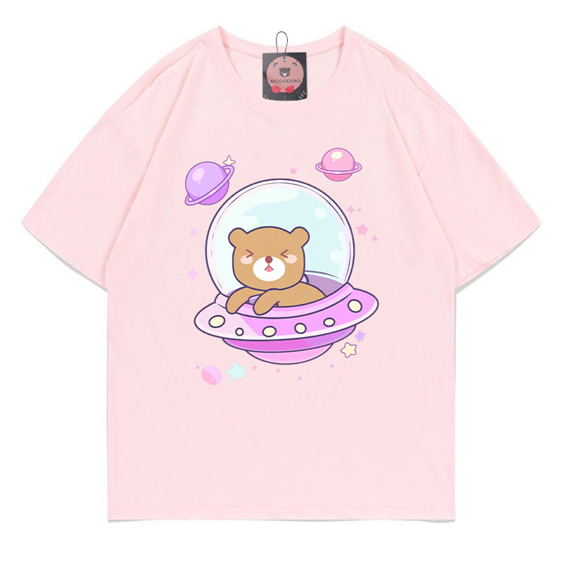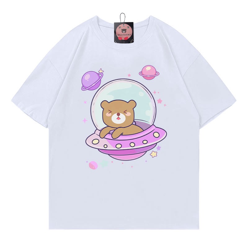 宇宙船ベアプリント100%綿ModakawaTシャツ