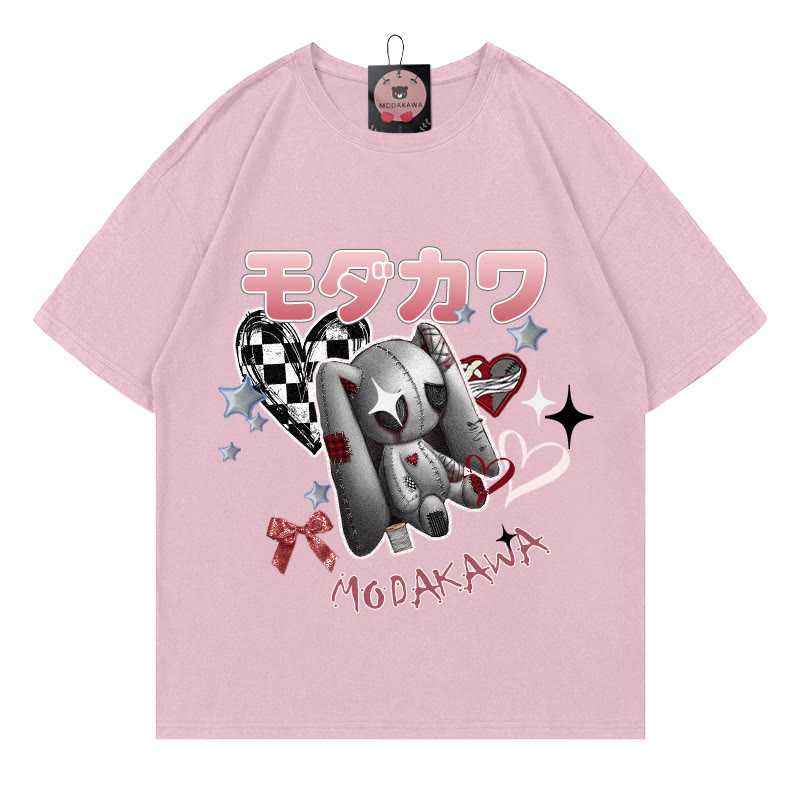 バニーハートレタープリント100%綿ModakawaTシャツ