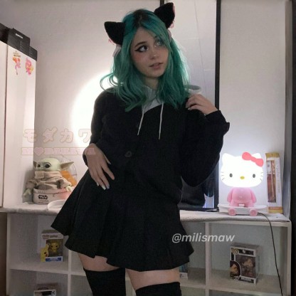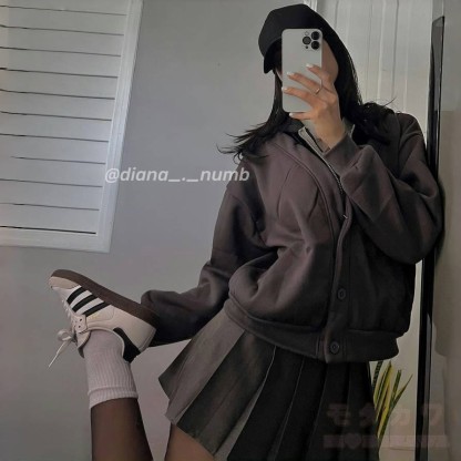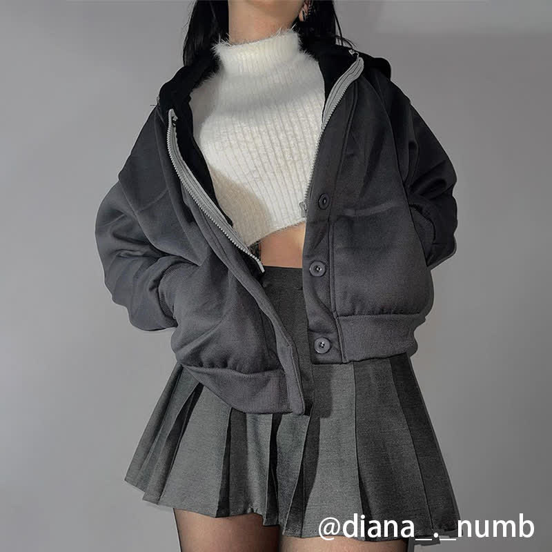 カラーブロックポケットパーカープリーツスカート2ピースセット