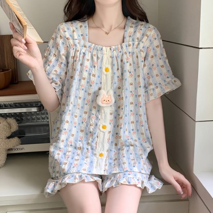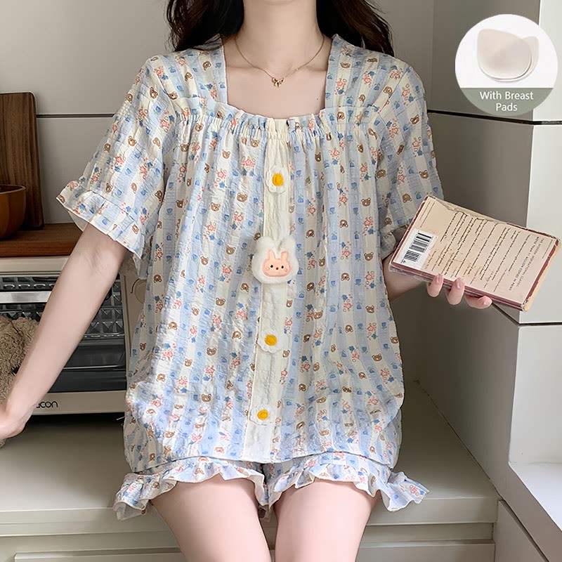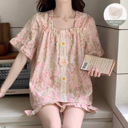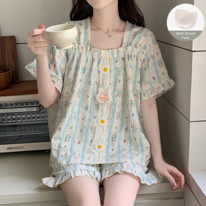 3Dバニーフラウンスパジャマ2点セット(胸パッド付き)