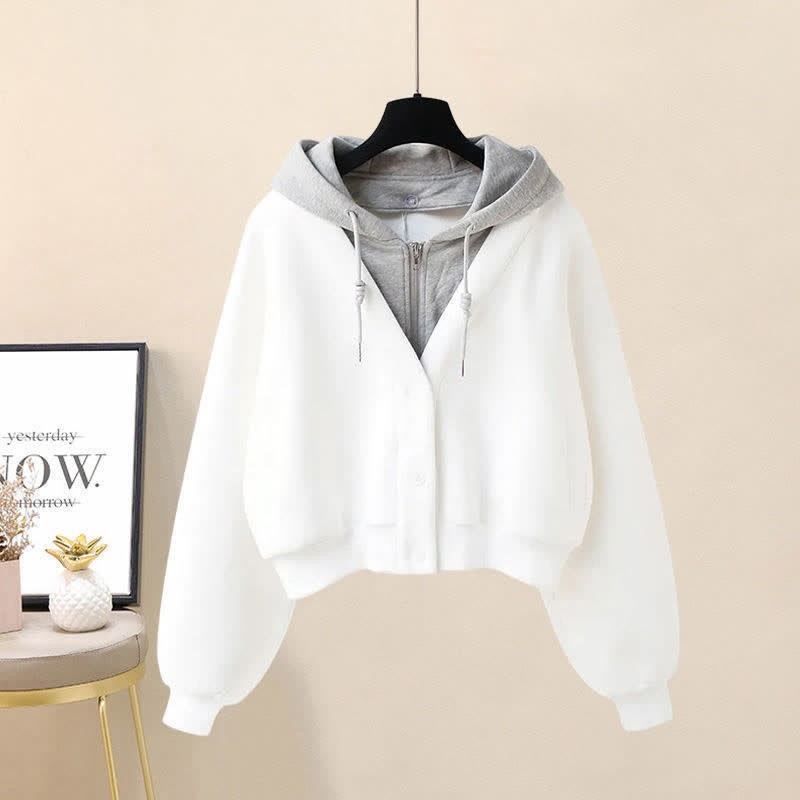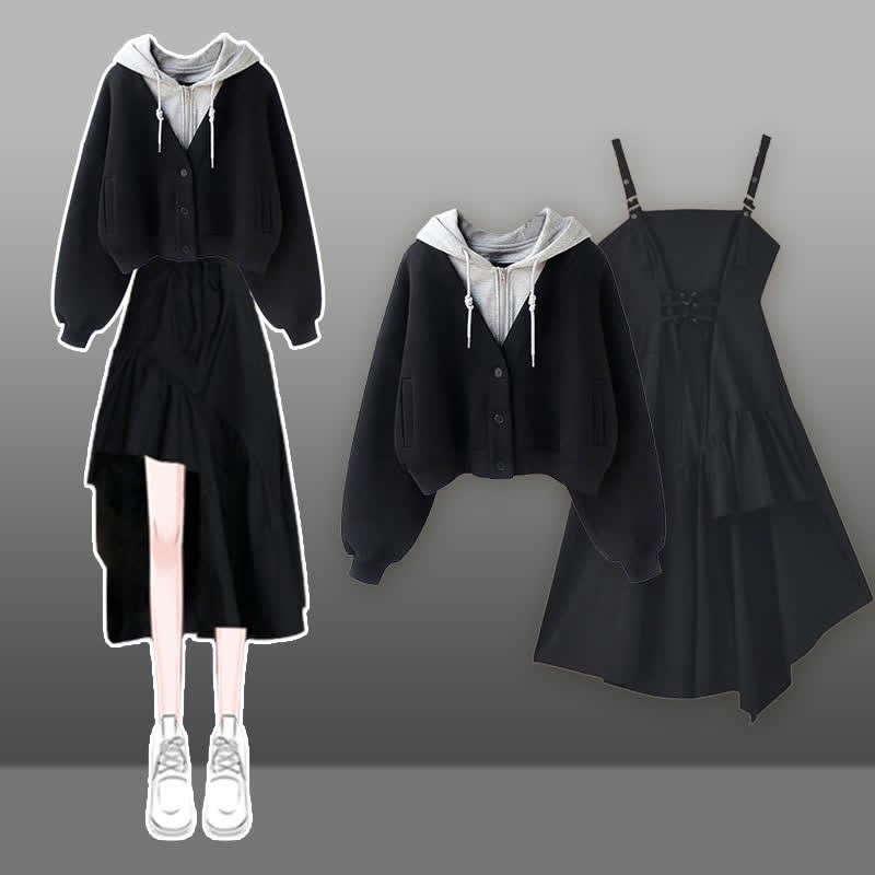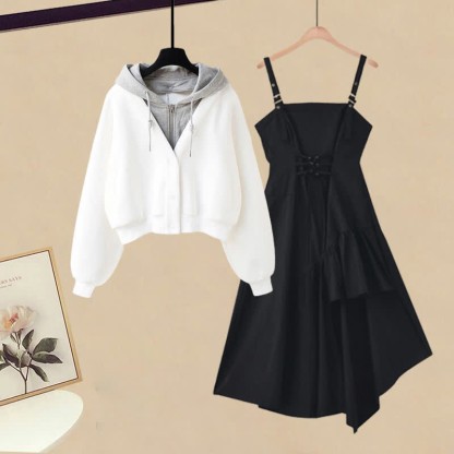 カラーブロックポケットフーディーレースアップイレギュラースリップドレス