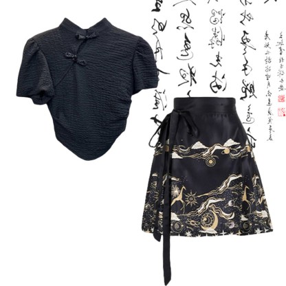 ヴィンテージバックルシャツ レースアップ プリーツスカート