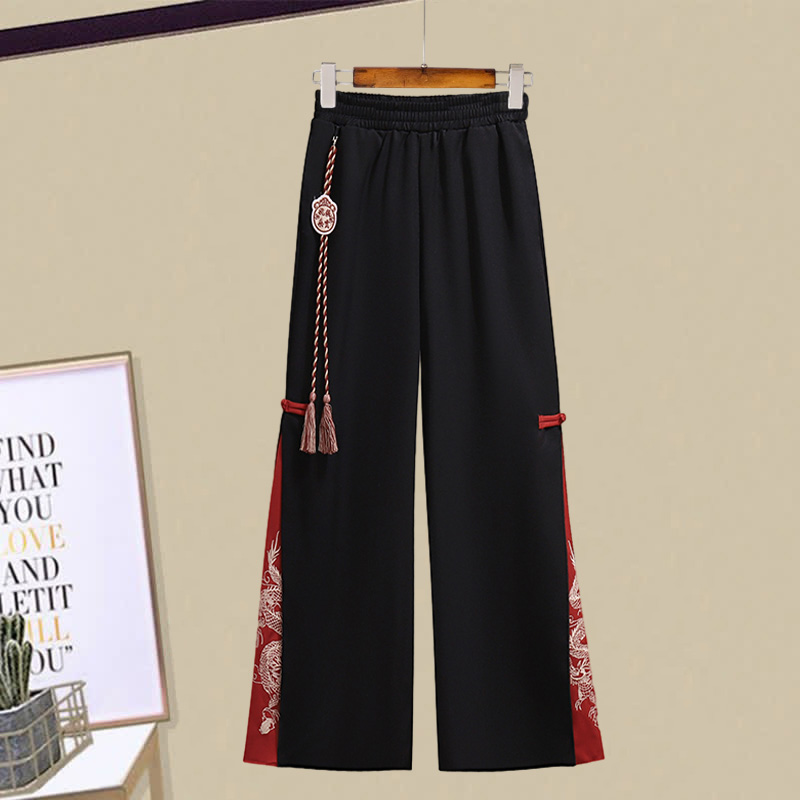 クロスニットセーター タートルネックシャツ ヴィンテージドラゴン柄 スプリットパンツ