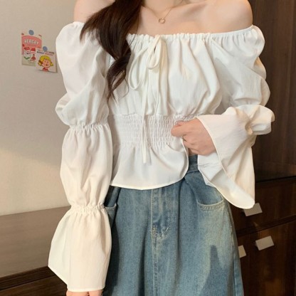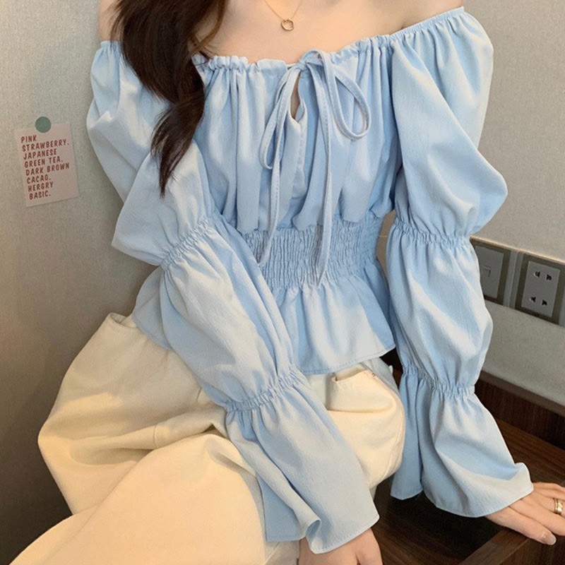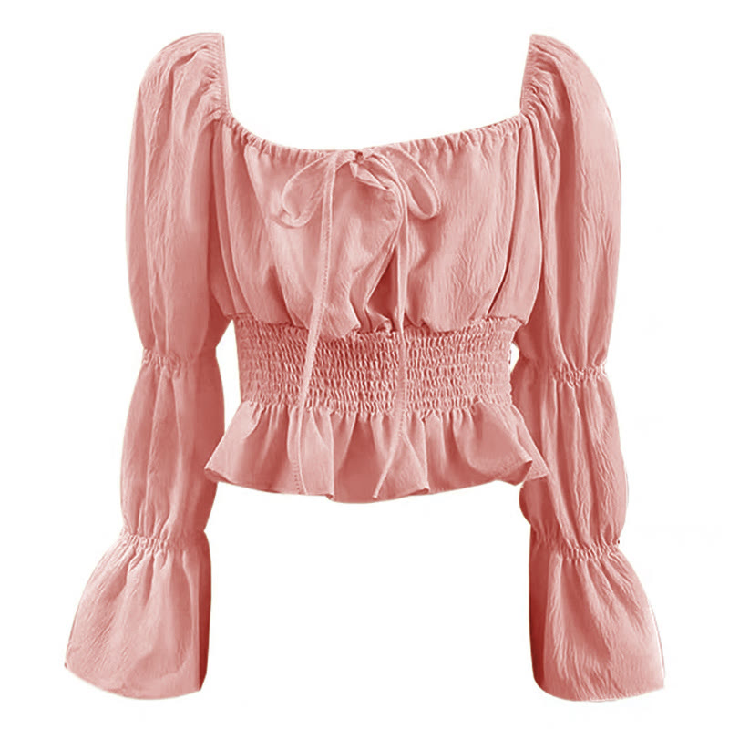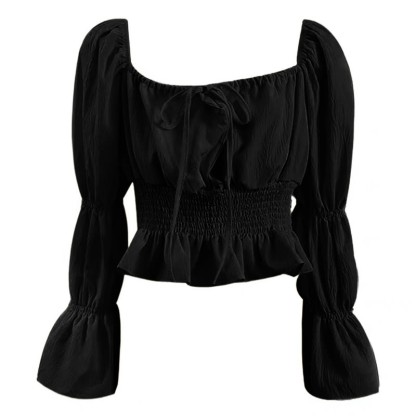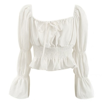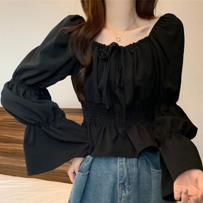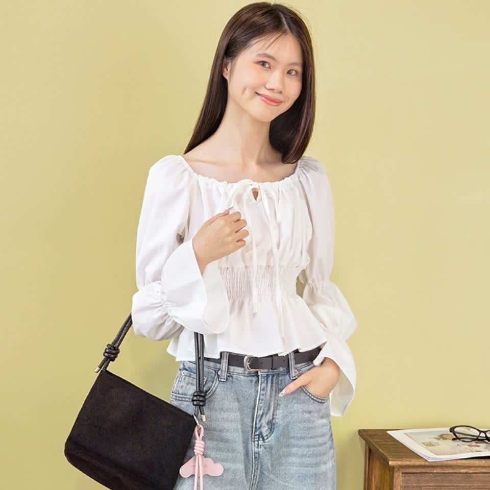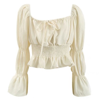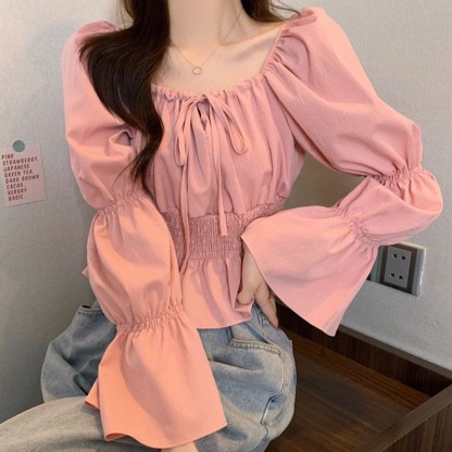 シャーリングレースアップトップス