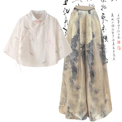 ヴィンテージバックルシャツ ワイドレッグパンツ