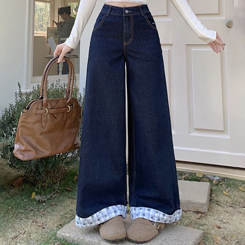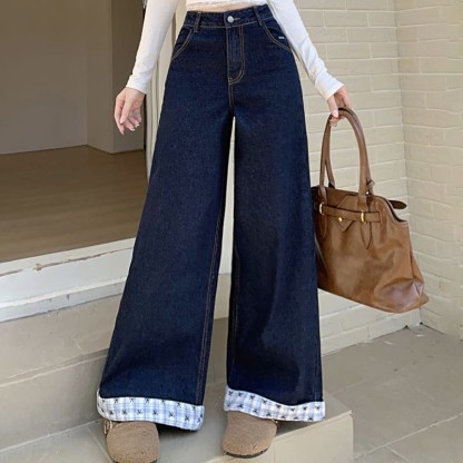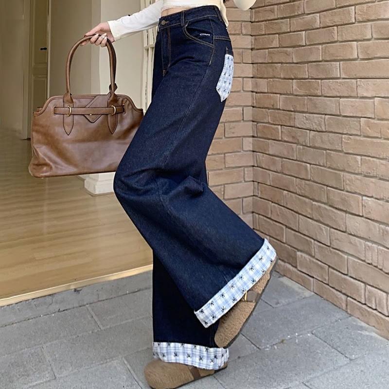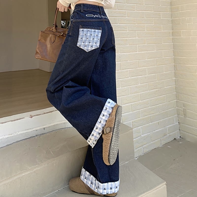 チェック柄ボウデニムパンツ
