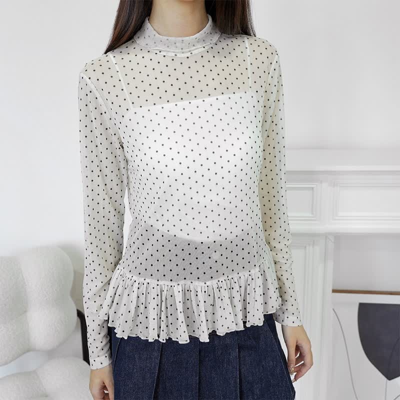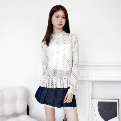 水玉フリルブラウス