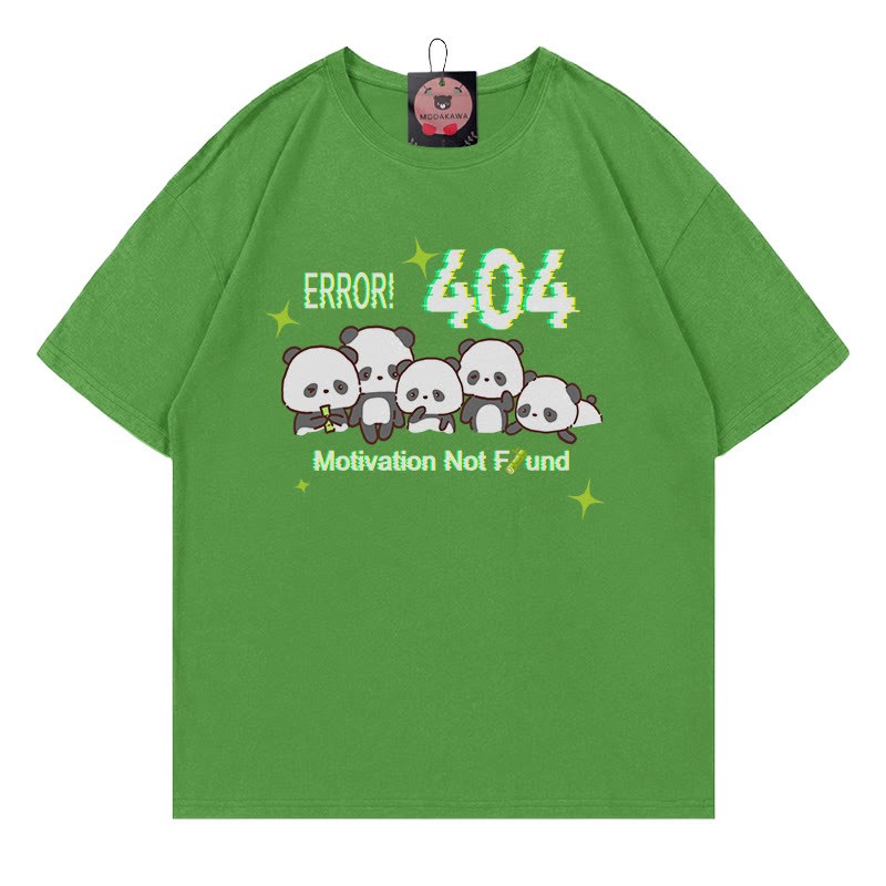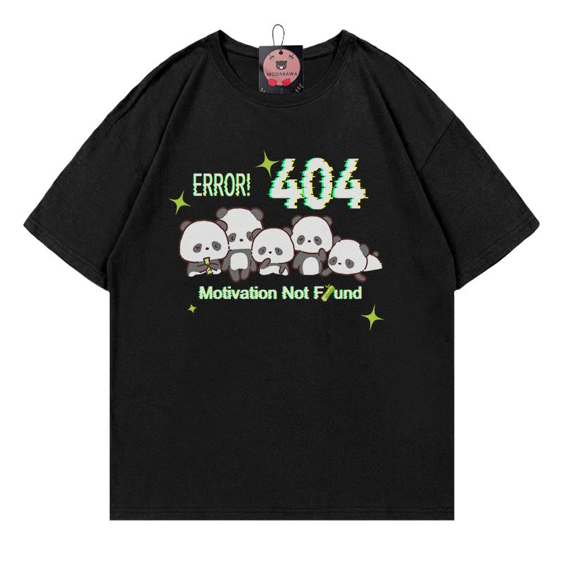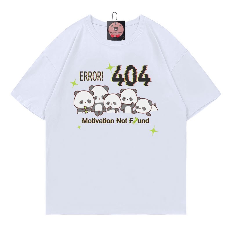 ERROR404 モチベーションが見つかりません パンダプリント100%綿ModakawaTシャツ