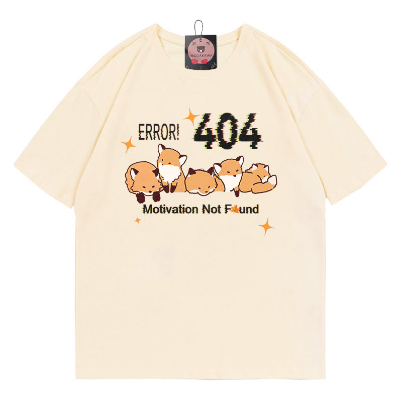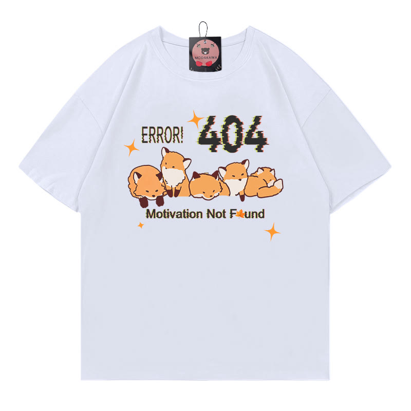 ERROR404 モチベーションが見つかりません フォックスプリント100%綿ModakawaTシャツ