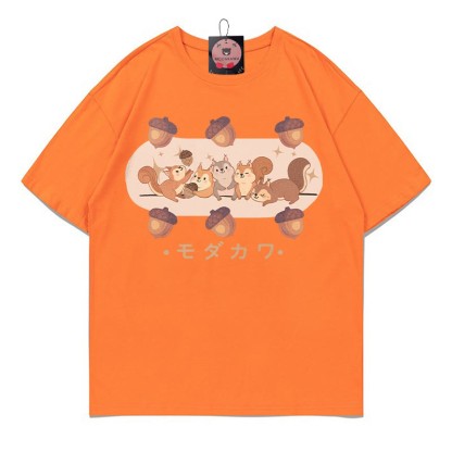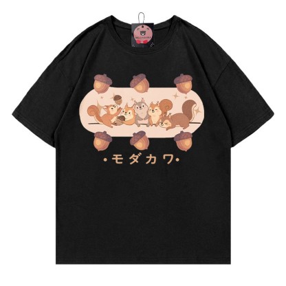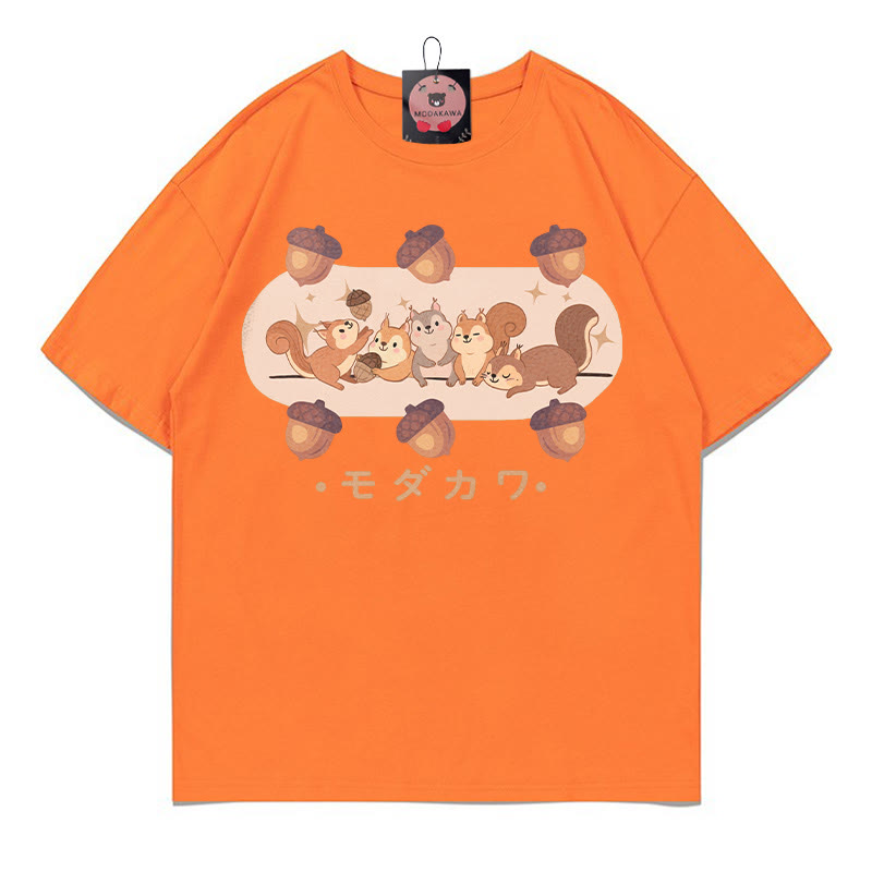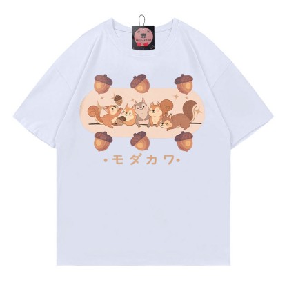 リスの松ぼっくり文字プリント MODAKAWA Tシャツ