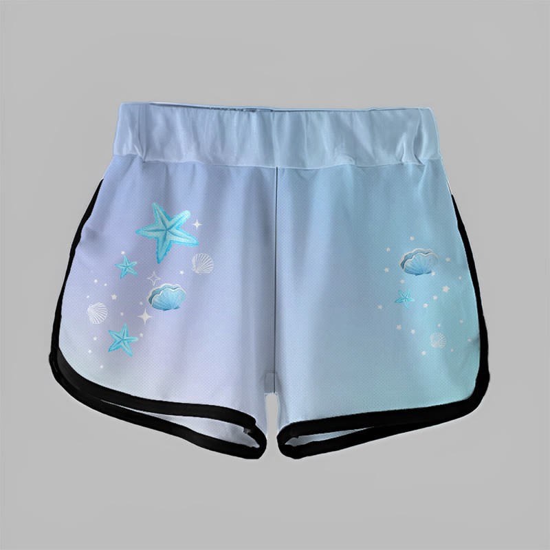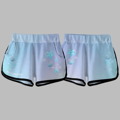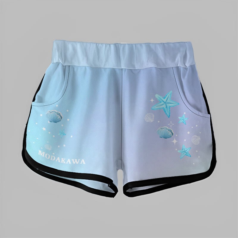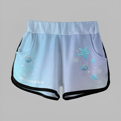 Modakawaグラデーション ヒトデ シェル プリント カジュアル ショートパンツ