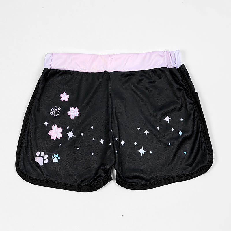 Modakawaグラデーション サクラ スター 足跡プリント カジュアル ショートパンツ