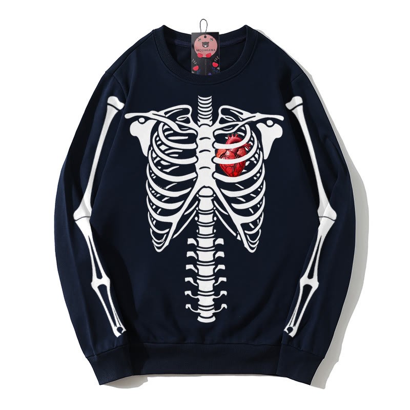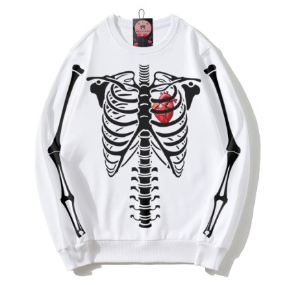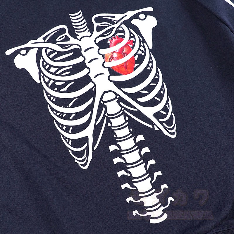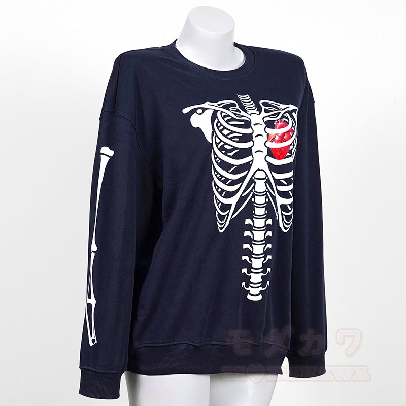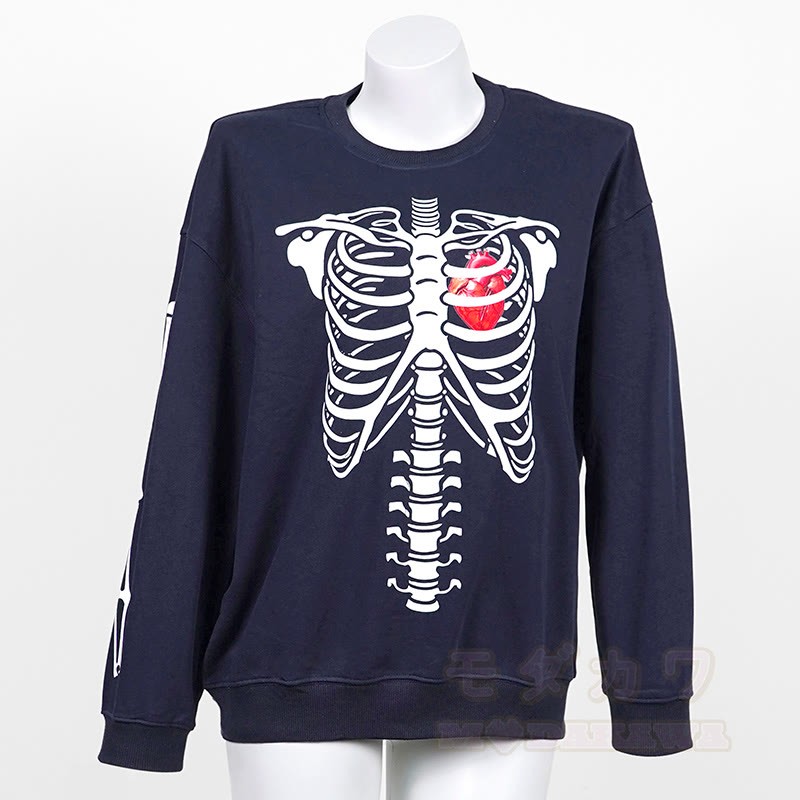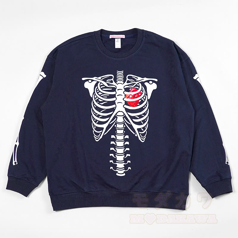 スケルトンハートプリント綿Modakawaカワラウンドカラースウェットシャツ