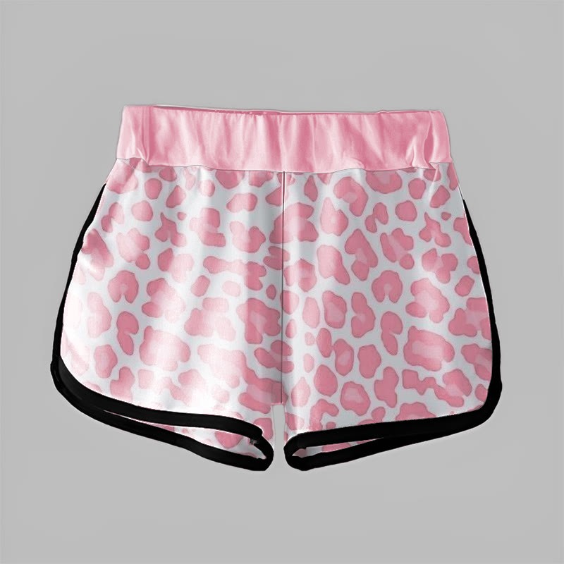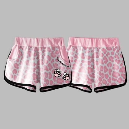 ヒョウ柄の足跡と文字のプリントが特徴のModakawaショーツ