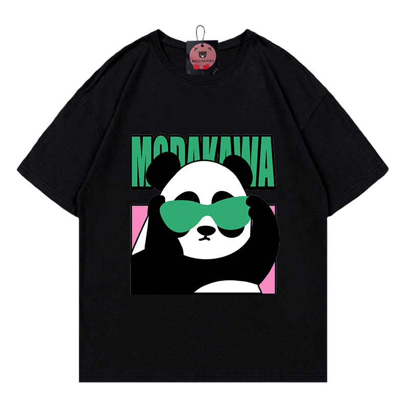 クールなパンダの文字プリントModakawaTシャツ