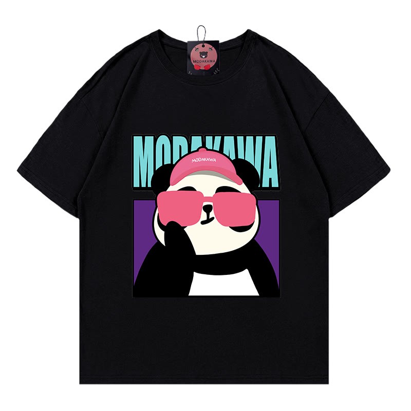 クールなパンダの文字プリントModakawaTシャツ