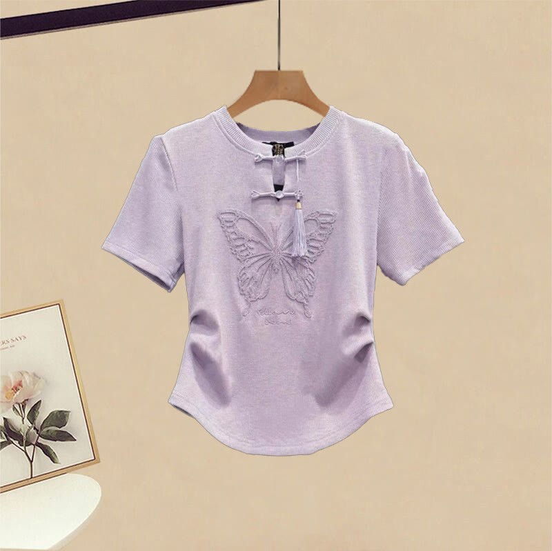 ヴィンテージバックルバタフライTシャツ グラデーションフラウンススカート 2ピースセット