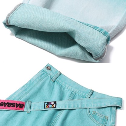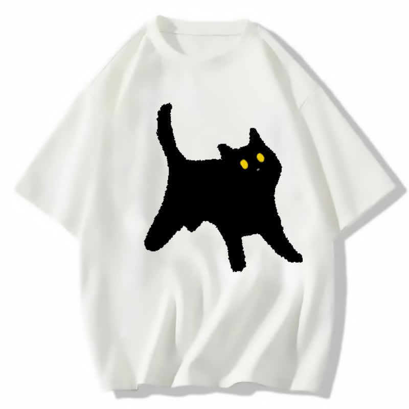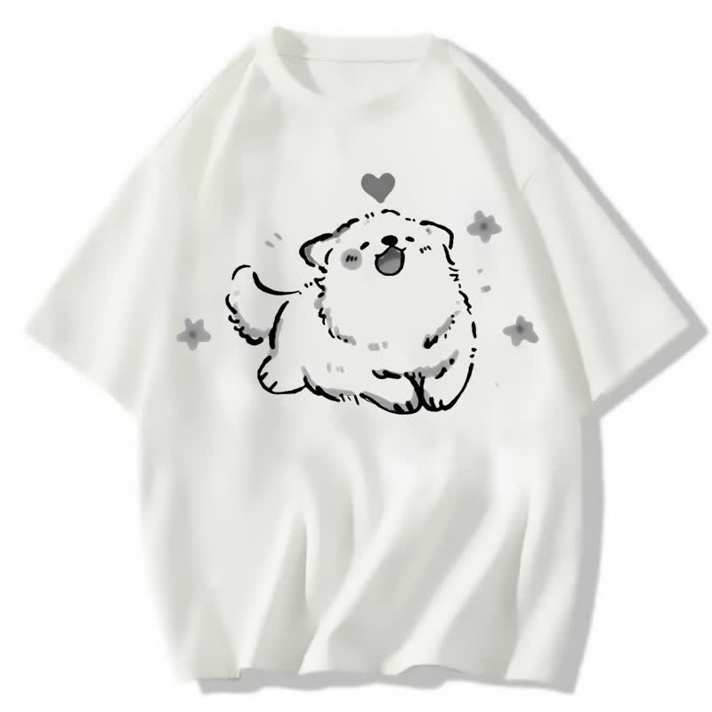 漫画プリントのカジュアルTシャツと破れたパンツ