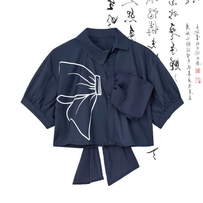 リボンプリントTシャツ ハイウエストプリーツスカート